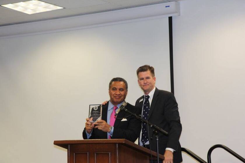 Former broadcast journalism student and BYU football player, Vai Sikahema, spoke during a luncheon for the Raymond E. and Ida Lee Beckham Lecture Series. Vai is a former NFL player and is currently a morning news anchor for NBC10 News Today in Philadelphia.